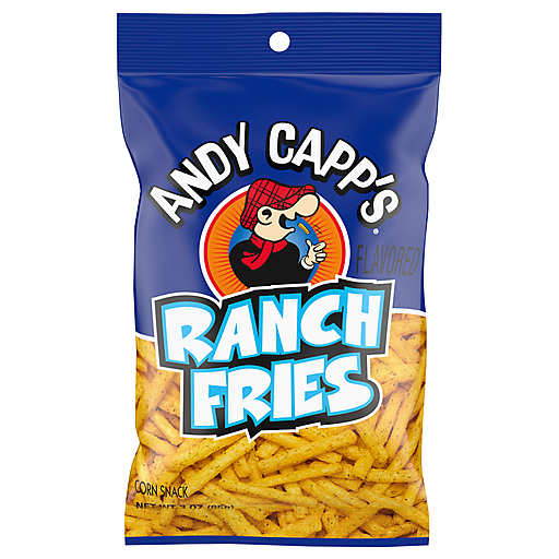 Get a flavor punch in every crunch. Andy Capp's Ranch Fries Corn & Potato Snacks look like french fries, but crunches like chips. Enjoy this nostalgic salty snack food now with a tangy ranch flavor. With 140 calories and 0g trans fat per serving, they're a unique alternative snack to potato chips. Grab this 3-oz. bag of Andy Capp's Fries for late-night snacking, road trips, movies or sporting events. You'll be glad to have this ranch-flavored crunchy stack on hand. Go on, taste the crunch!