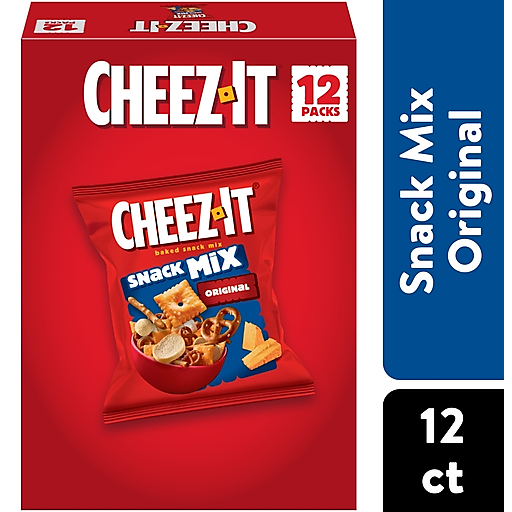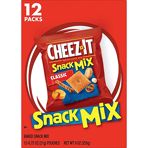 Satisfy your snack time cravings with a delicious handful of Cheez-It Snack Mix Classic. This snack mix features a tasty combination of baked snack crackers made with 100% real cheese, salty pretzels, mini toasted bread slices, savory wheat squares, and cheese flavored rice puffs that have been baked to crispy, crunchy perfection. This snack mix is perfectly sized for on-the-go snacking, as a flavorful addition to a packed lunch, or even just a quick bite around the house. Toss a pouch in your tote for a long commute, bring some snack mix in the car for a road trip, or stash them in your desk at the office for convenience. You can spice up everyday, out-of-the-home activities like field trips, camping, hiking, trips to the park, picnics, outdoor concerts, errands, and more by bringing along our Classic snack mix. No matter where you enjoy it - you'll love the epically satisfying mix of flavors in every handful of Cheez-It Snack Mix Classic.