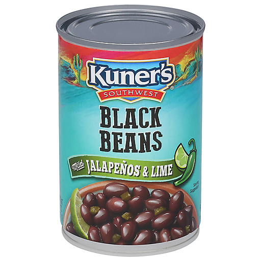Kuner's Southwest Black Beans with Mild Jalapenos & Lime in a 15 oz can adds a zesty flavor to your favorite Southwestern recipes while saving time in the kitchen! These prepared black beans with jalapeno peppers seasoned with onion & garlic powder, spice & lime juice, are a delicious and hearty, yet simple addition to your meal plan. Use Kuner's Southwest Black Beans with Mild Jalapenos & Lime in chili, soup, quesadilla, enchilada, taco and burrito recipes or heat & serve on it's own for a tasty side dish. Southwestern cooking is a celebration of flavors, including seasoned beans, flavorful tomatoes and a wide variety of chili peppers. Kuner's brings the taste of the Southwest to you. Manufactured in the U.S.