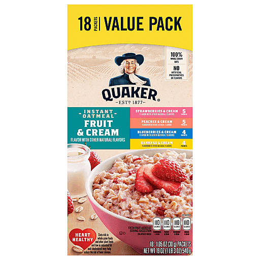 Quaker Fruit & Cream Assorted Instant Oatmeal Value Pack 18 Ea