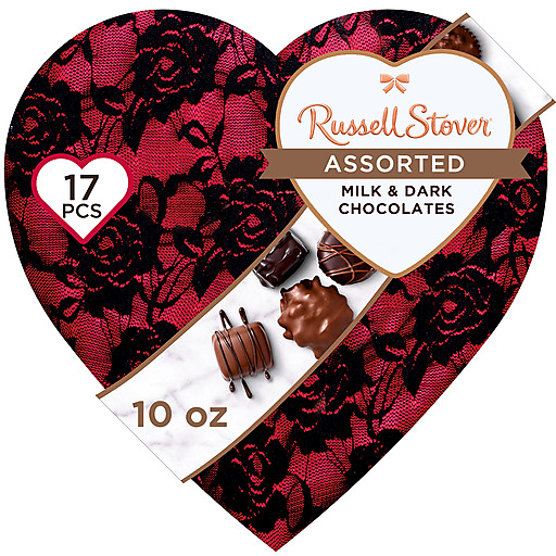 Russell Stover Valentine's Day Secret Lace Heart Assorted Milk & Dark Chocolate Candy Gift Box, 10 Oz. 10 Oz