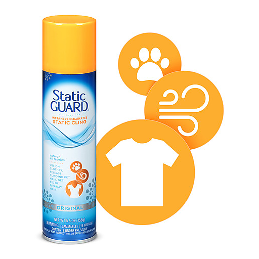 Instantly eliminates static cling, Static Guard Spray makes it easier for you to keep your clothes separate. Safe on all fabrics, use on clothes, release clinging pet hair, or get rid of flyaway hair. It instantly releases the hold that fabrics have on one another. Spray it on your comb or brush, then run them through your hair to calm flyaways. Static Guard works mainly by neutralizing the electrical charges on surfaces, and by attracting humidity from the air to lower the imbalance of positive and negative electrical charges that cause static cling and static shock. Static Guard is America’s #1 anti-static spray. Static Guard spray instantly eliminates static electricity and prevents static buildup. Our static cling spray lasts all day, so you never have to be caught in an embarrassing clingy spot or shocking situation again! For more information and useful tips visit www.mystaticguard.com.